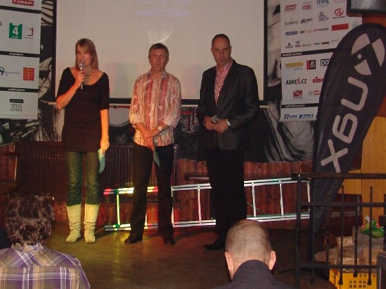 7.ročník MFOF , po šesté v Klubu Plíživá kontra. Zleva provozovatelka klubu a spolupořadatelka Jarmila Chovancová, prezident festivalu Jiří Kráčalík a starosta města Jeseník Petr Procházka. FOTO (ma)
