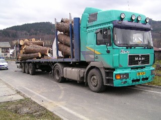 Internet.JPG - V České Vsi, kousek za Řetězárnou, došlo k poněkud netradiční dopravní nehodě. Špatně zajištěné klády na nákladním automobilu se uvolnily a vysypaly na vozovku i do řeky. Policie uvádí, že vinu nese řidič. Více fotek najdete ve fotogalerii.